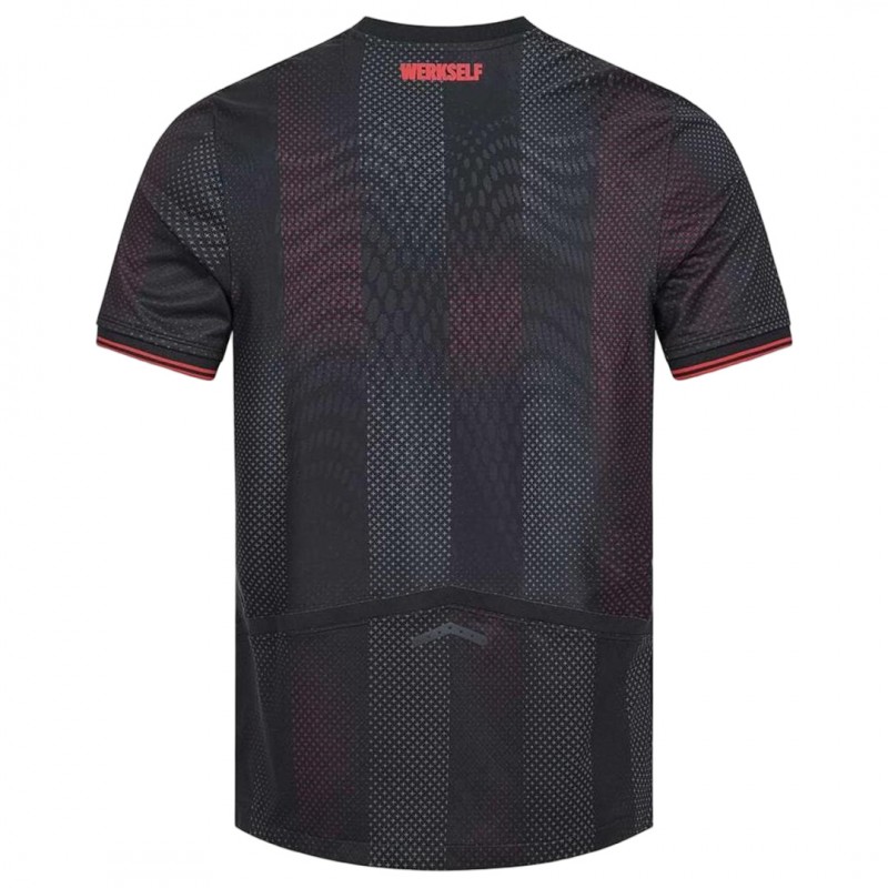 The New Balance Leverkusen 2025-26 home shirt sticks to the club’s iconic black and red color scheme.
