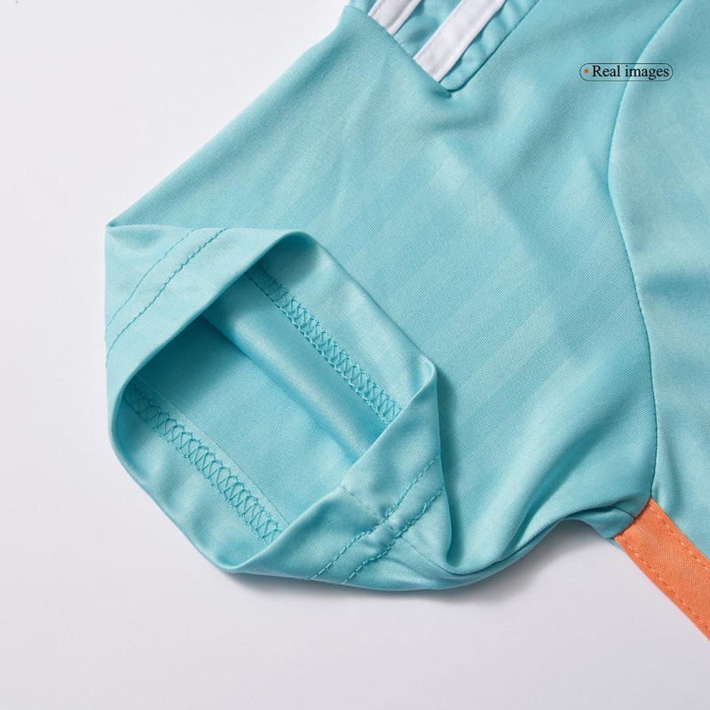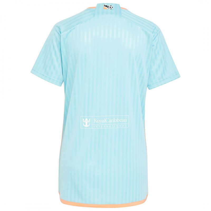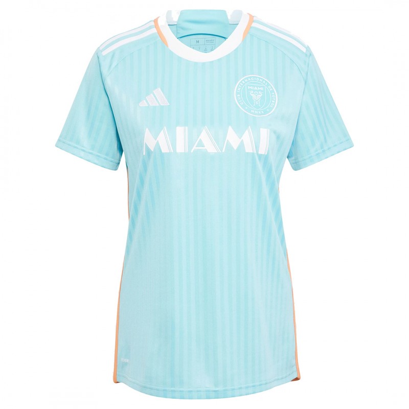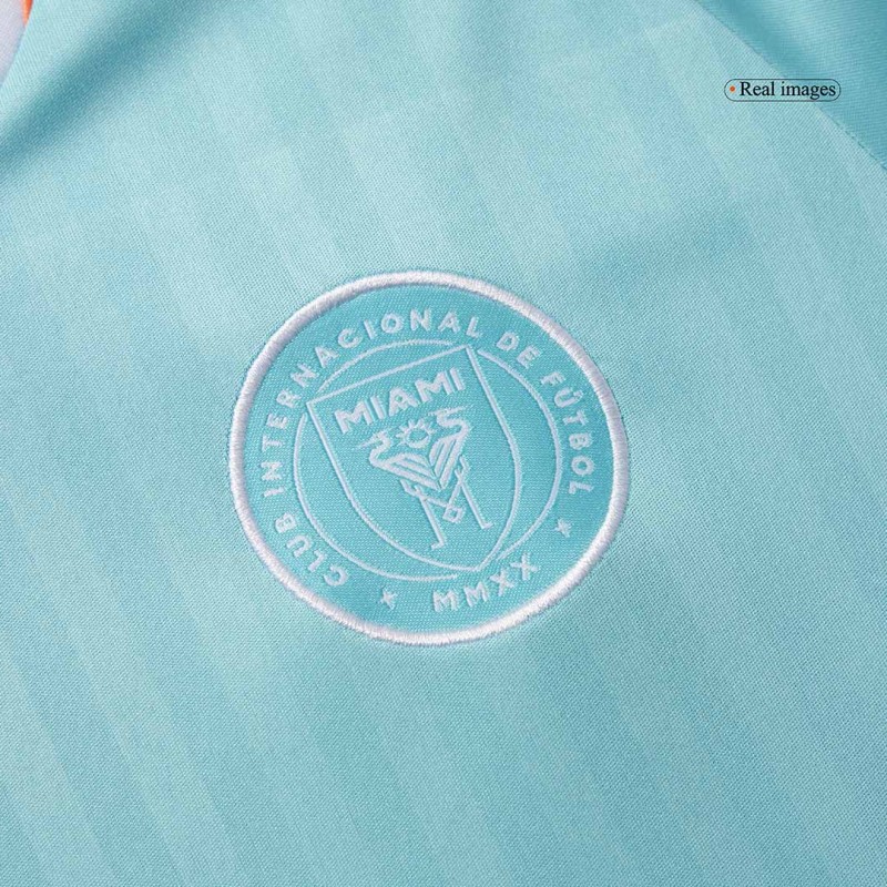 The new Inter Miami 2024 third jersey is aqua turquoise combined with orange and white accents.