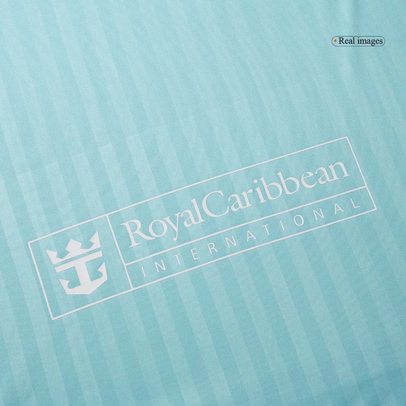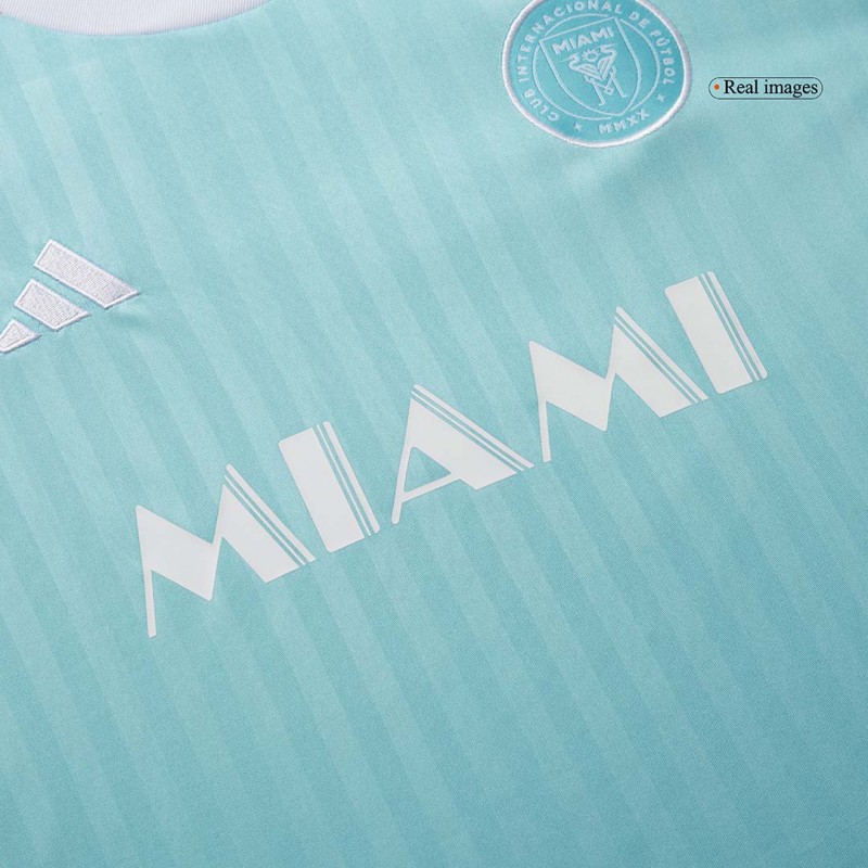 The highlight of Inter Miami 2024 third shirt is that the word Miami in a "Miami Vice" typeface appears on the chest instead of the Royal Caribbean sponsor logo.