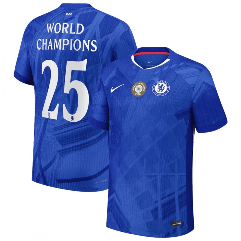 Tags:  WORLD CHAMPIONS #25 Chelsea Home Match Jersey Player Version 2025/26 - World Champion Badge