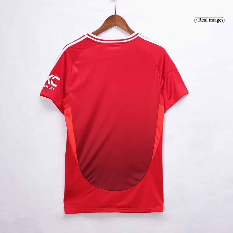 The Manchester United FC 24-25 home football shirt combines two shades of red in a gradient design.