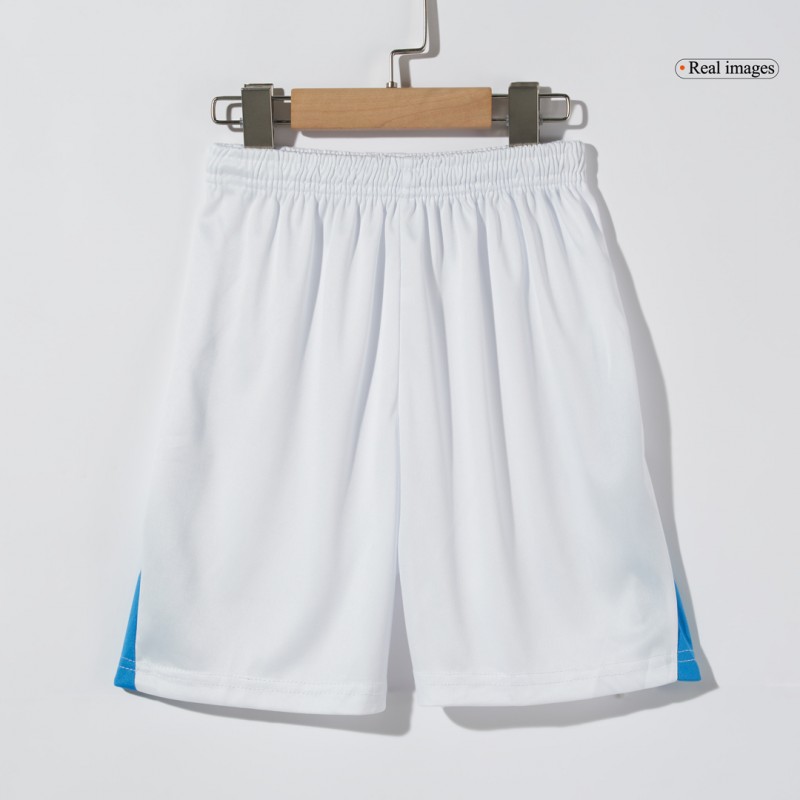 The EA7 Napoli 2024-2025 home jersey is predominantly sky blue with a fashionable and elegant design.