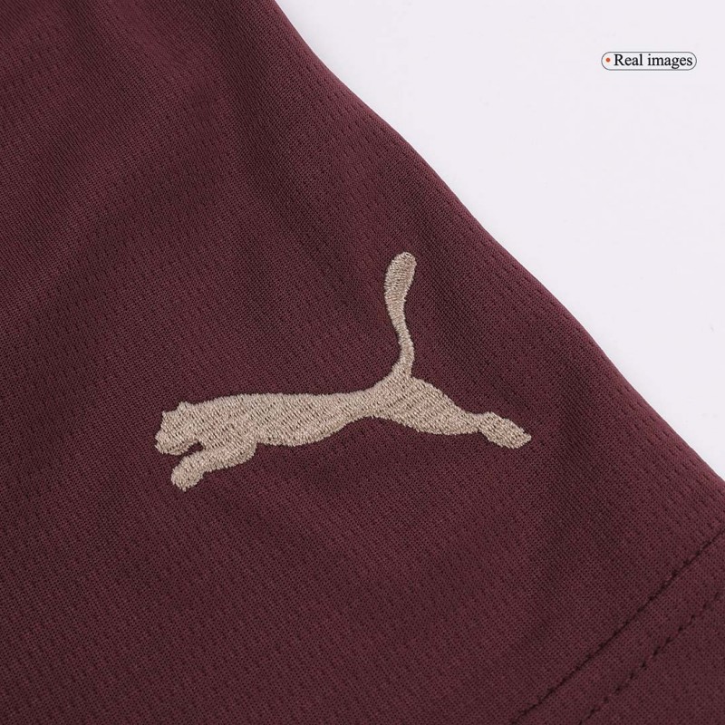 The Manchester City Football Club 24-25 third jersey is maroon - the first time with Puma and for the first time since the 2017-18 away kit.