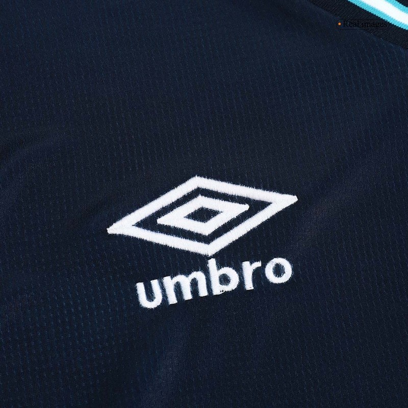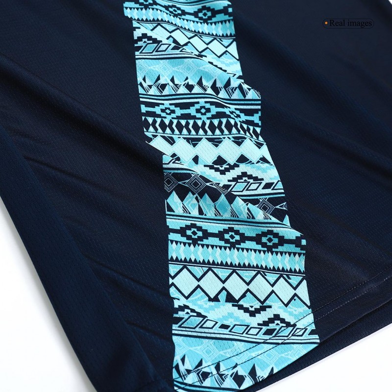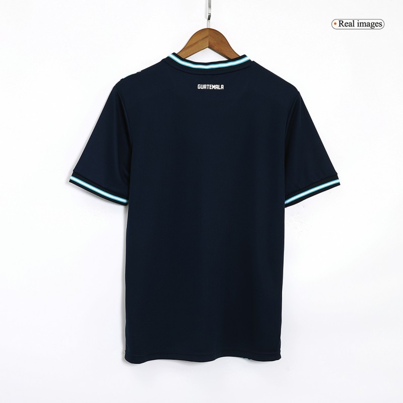 The Umbro Guatemala 2023 away football shirt swaps the white of the home shirt with navy and preserves the design and colours of the sash.