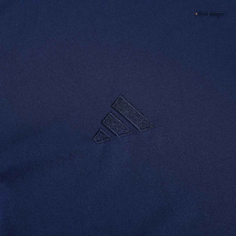 The new Scotland 150th Anniversary jersey introduces a classy design in dark blue with white trim in the form of the collar and sleeve cuffs.