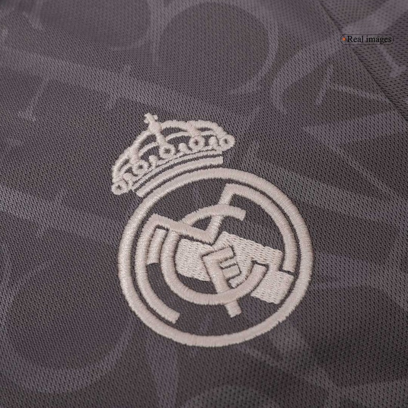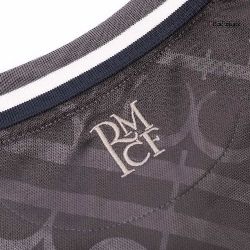 The Real Madrid 2024-25 third shirt has a charcoal brownish-grey (Charcoal) main color combined with 'RMCF' embossing all over the shirt for a unique look.