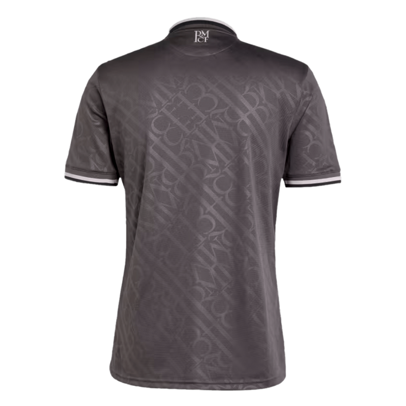 The Real Madrid 2024-25 third shirt has a charcoal brownish-grey (Charcoal) main color combined with 'RMCF' embossing all over the shirt for a unique look.