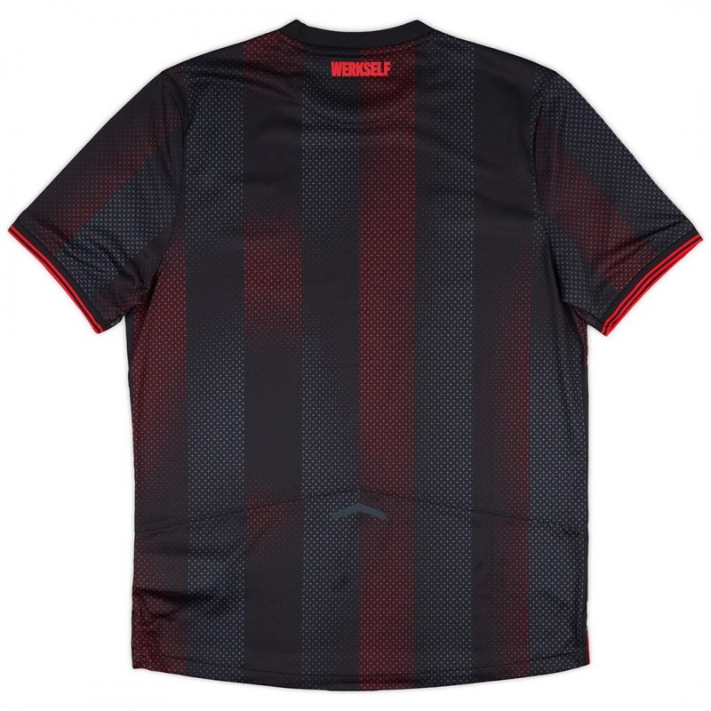 The New Balance Leverkusen 2025-26 home shirt sticks to the club’s iconic black and red color scheme.