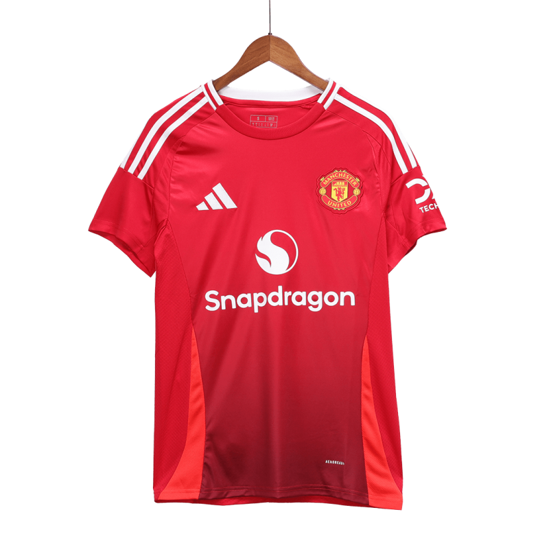 The Manchester United FC 24-25 home football shirt combines two shades of red in a gradient design.
