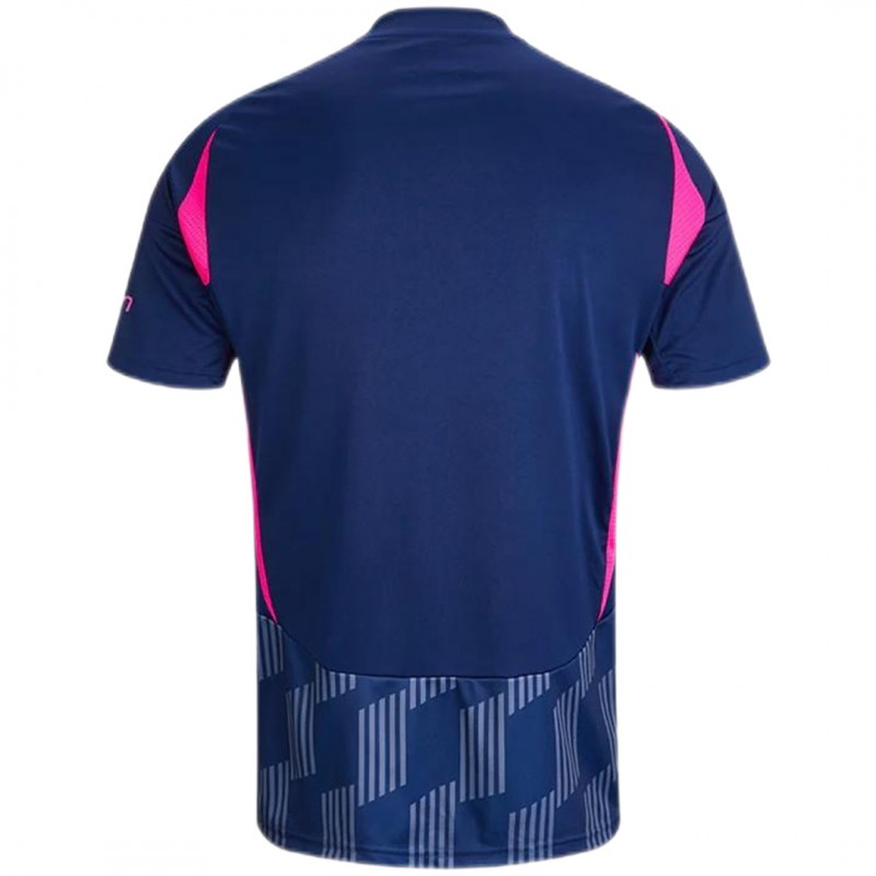 The Nottingham Forest 24-25 away jersey is a dark navy with a graphic of panels made up of stripes that are arranged together to create a rather peculiar look.
