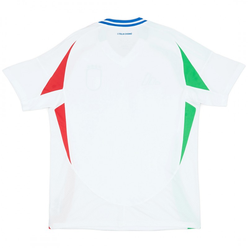 The Adidas Italy 2024 away jersey combines a white base with blue logos.